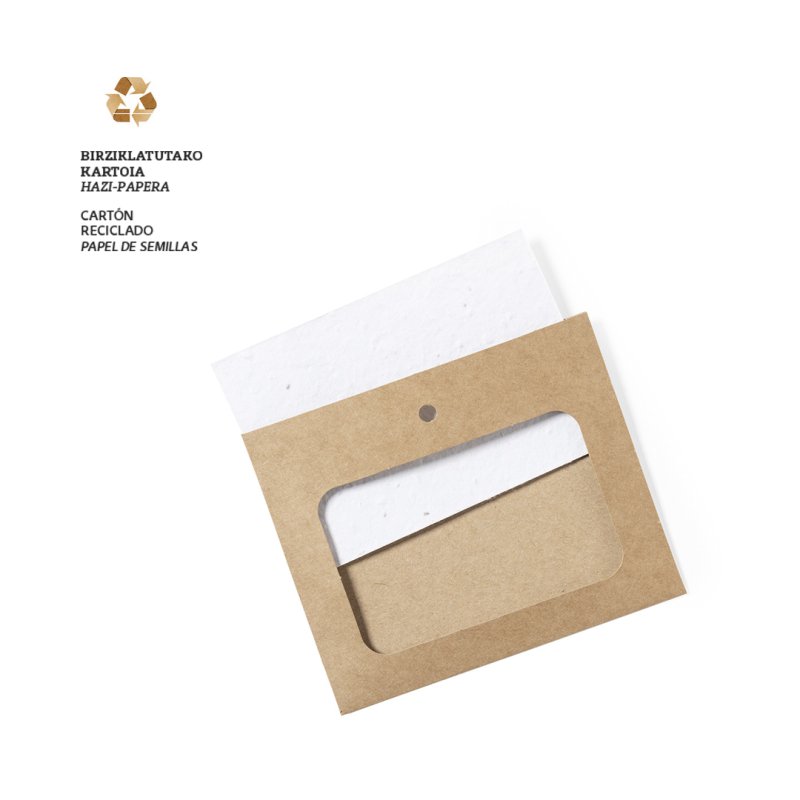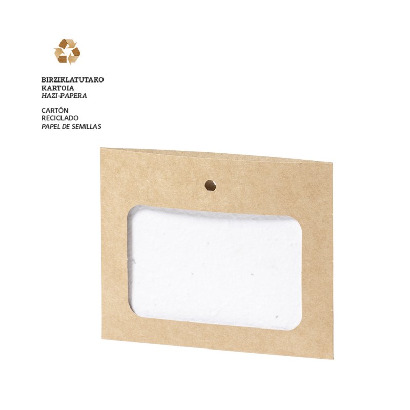 Identificador en cartón reciclado. Incluye tarjeta con semillas de flores silvestres, convirtiéndolo así en papel plantable al final de su vida útil. Flores silvestres en colores surtidos, con instrucciones de plantado en el interior y distintivo Made in Europe.