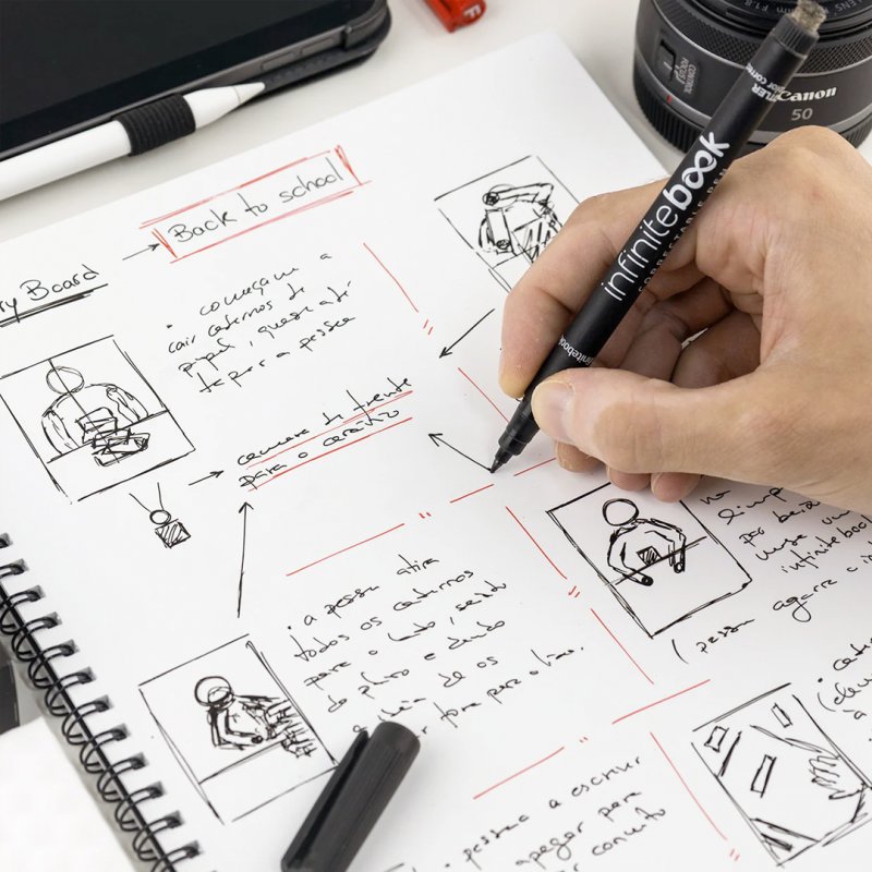 El Infinitebook es un cuaderno reutilizable que te permite escribir, borrar y empezar de nuevo sin limitaciones. Puede llevarlo a cualquier parte y utilizarlo para historias, relatos, dibujos o gráficos. ¡Crea sin restricciones de espacio, tiempo o ideas!