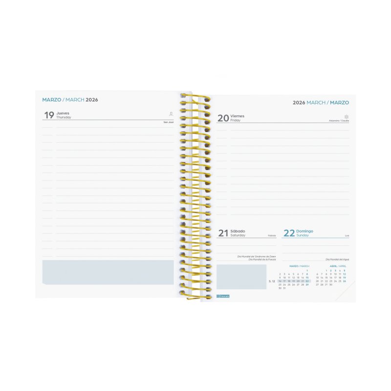 Goma elástica, microperforado, planning mensual, calendarios, notas, direcciones e iconos útiles para fechas especiales.