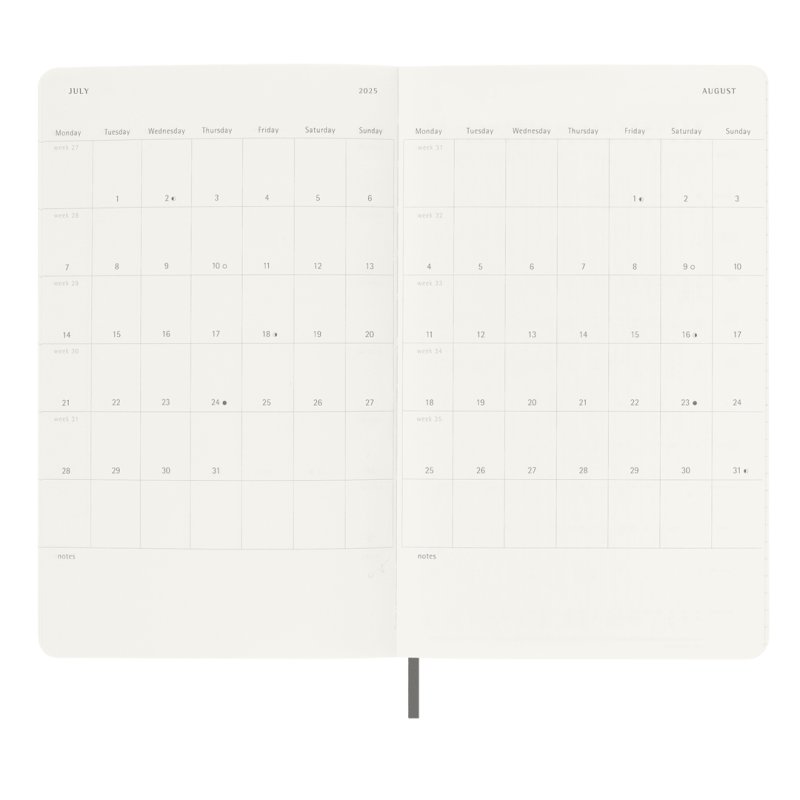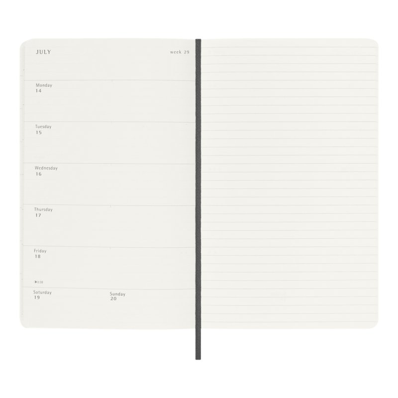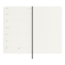 Formato, Días de la semana a la izquierda, hoja rayada en la derecha.