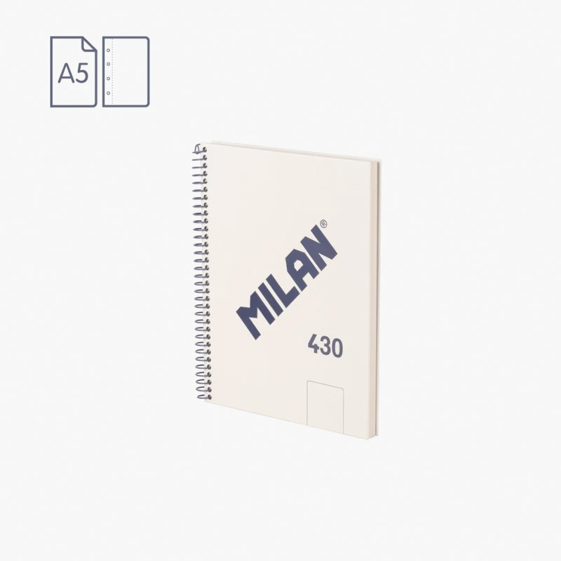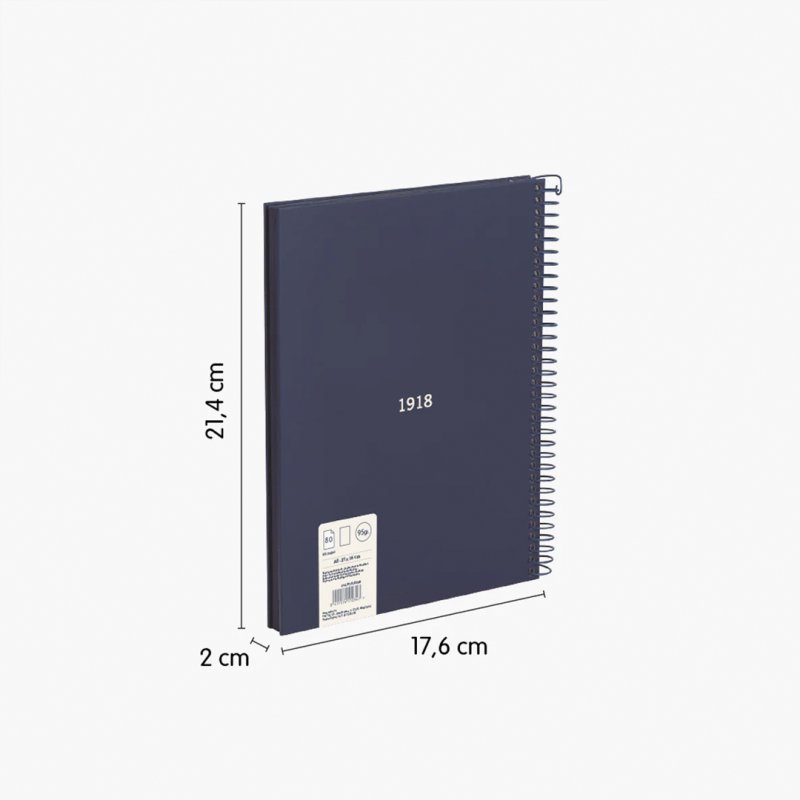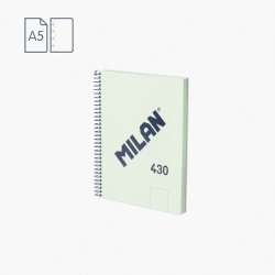 Libreta con espiral metálica resistente y flexible con cierre de seguridad que evita enganches con la ropa, papel cuadricula, 80 hojas, A5. Cubierta de cartón rígido y logotipo MILAN brillante en relieve. Papel de 95 gr/m² de alta calidad, microperforado y con 2 taladros. Iniciador de corte para facilitar la separación de cada hoja. Serie 1918 inspirada en los colores y diseño originales de las g