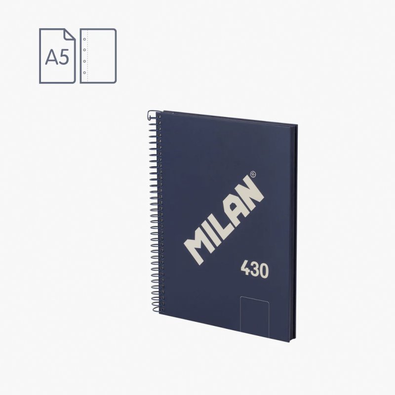 Libreta con espiral metálica resistente y flexible con cierre de seguridad que evita enganches con la ropa, papel lineas, 80 hojas, A5. Cubierta de cartón rígido y logotipo MILAN brillante en relieve. Papel de 95 gr/m² de alta calidad, microperforado y con 2 taladros. Iniciador de corte para facilitar la separación de cada hoja. Serie 1918 inspirada en los colores y diseño originales de las gomas