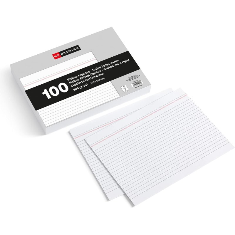 Miquelrius - Flashcards , 100 Fichas para Notas , Rayado Horizontal, Tarjetas para estudio , Tamaño 160 x 215 mm , Papel Cartulina Offset de 200 g/m²