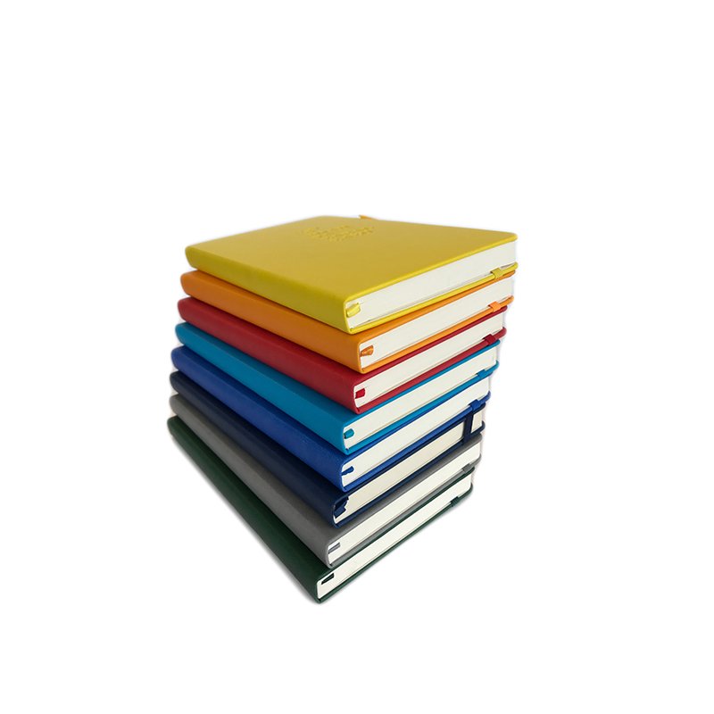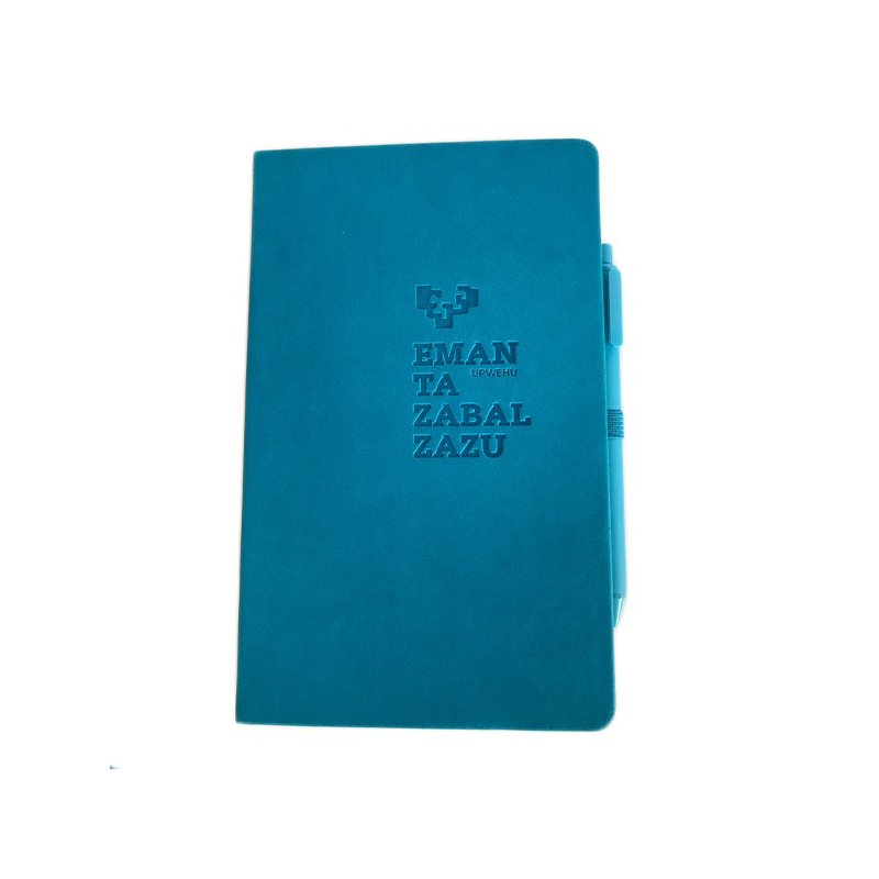 Tapa dura, con goma elástica y sujeción para boli.