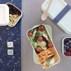 Bolsa isotérmica porta alimentos pequeña con 1 recipiente. Fabricada con botellas de plástico recicladas
