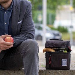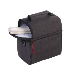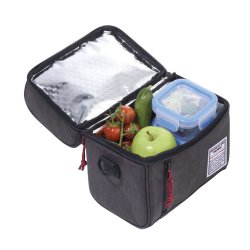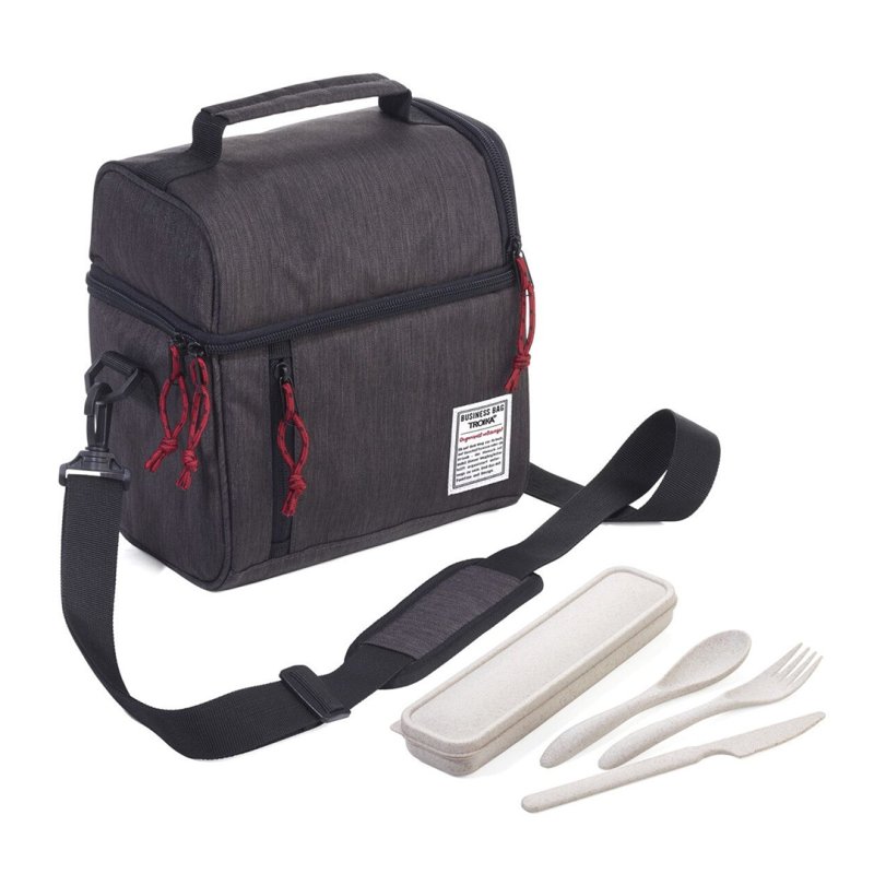 Bolsa térmica que incluye juego de cubiertos (cuchillo, tenedor, cuchara, caja de almacenamiento) hecha de 50 % paja de trigo / 50 % PP, para guardar alimentos y bebidas, mantiene el calor o el frío durante horas, compartimento principal con cremallera aislada y forro interior térmico de papel de aluminio de alta calidad, presilla para sujetar al carro, bandolera ajustable y extraíble, asa, bolsil