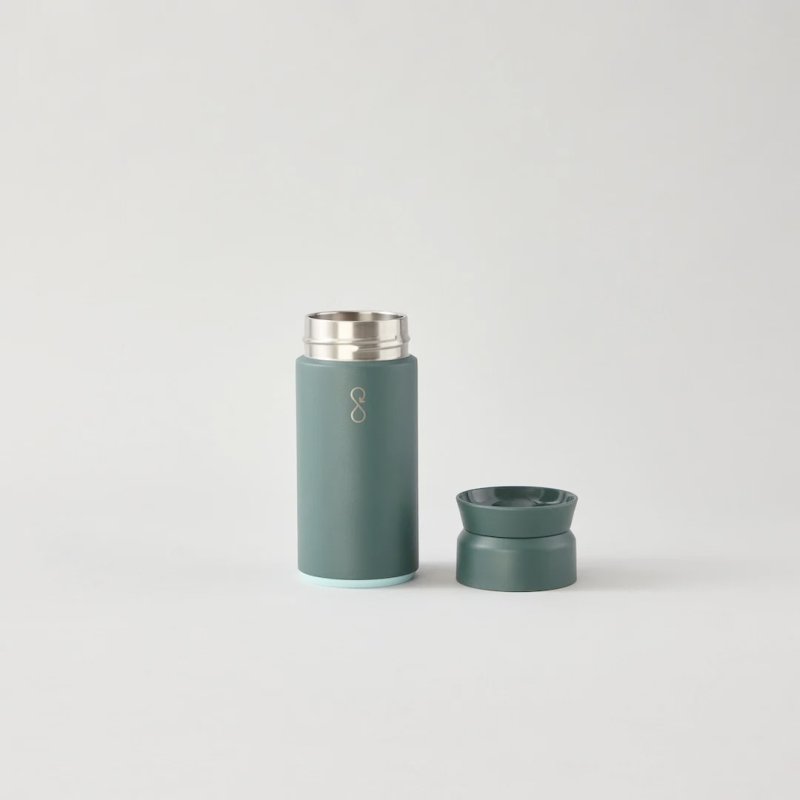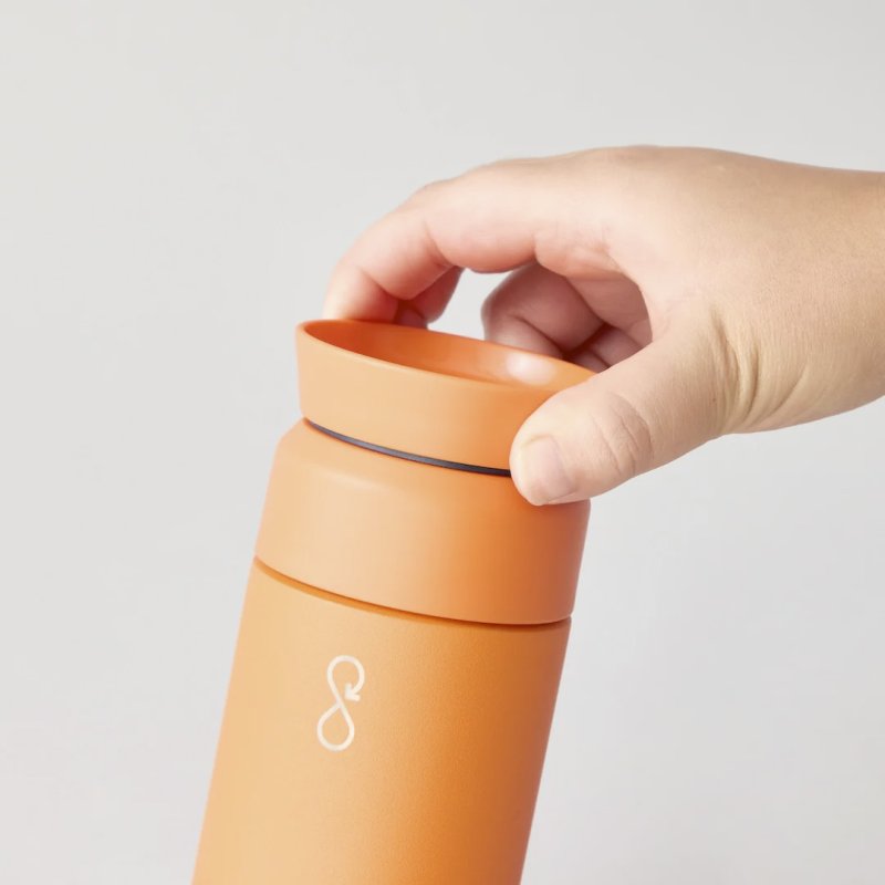 El termo "Ocean Bottle" de 350 ml es una gran opción para llevar bebidas calientes. La botella contiene acero inoxidable reciclado y plástico reciclado con riesgo de acabar en el océano. Un termo permite la recogida de 1000 botellas de plástico y mejora los medios de vida en las comunidades costeras. Cuenta con un chip inteligente NFC para la recolección de plástico cada vez que se rellena. La inn