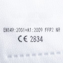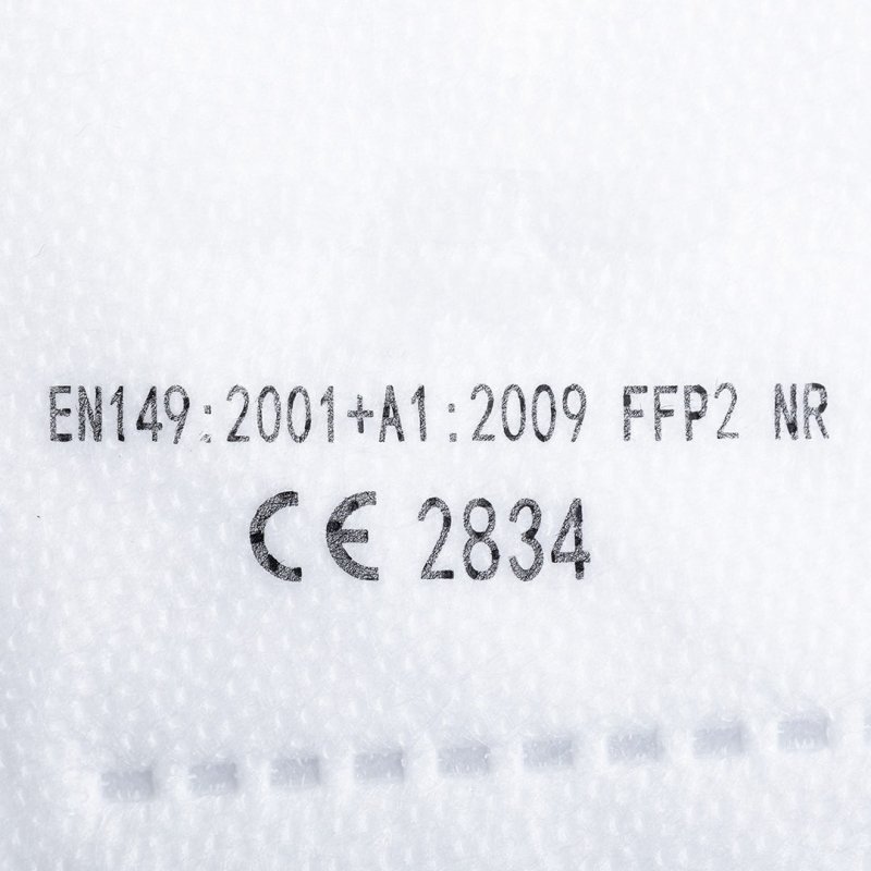 Cada máscara está empaquetada en una sola bolsa de plástico de tamaño: 11,8 x 15,7 cm, y se entrega en una caja de 10 piezas a todo color de tamaño: 14 x 13 x 5 cm. Cumplimiento: EN149: 2001 + A1: 2009. C