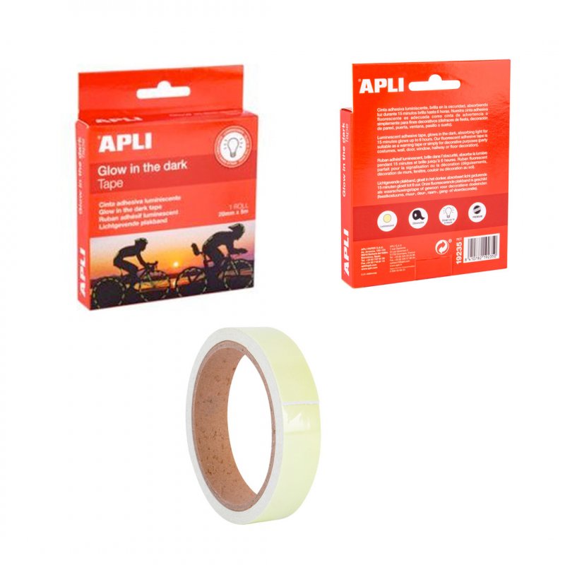 20 mm-ko zabalerako zinta itsasgarri luminiszentea. Argia 15 minutuz xurgatuz gero, 6 ordu arte egingo du distira. Gure zinta itsasgarri fluoreszentea egokia da ohartarazpen-zinta gisa edo, besterik gabe, apaingarri gisa (festa-mozorroak, hormako, ateko, leihoko, korridoreko edo zoruko apaingarriak).