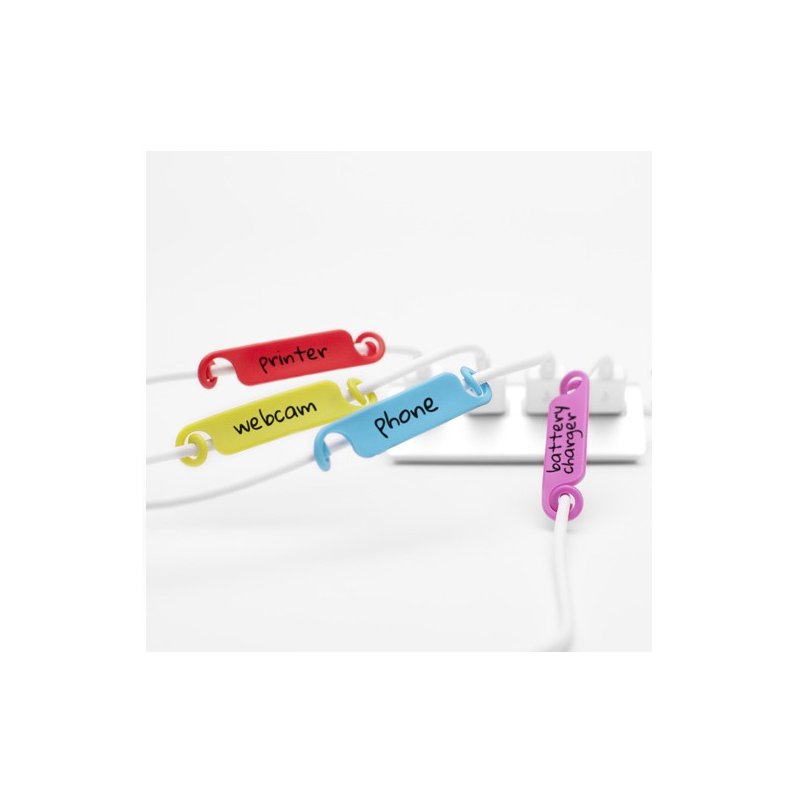 Se ajusta a cualquier tamaño de cable hasta 1 cm de grosor. No necesita adhesivo y es muy sencillo de usar. Está diseñado para que escribas en el con bolígrafo o rotulador. La tinta se puede borrar para utilizarlo tantas veces como quieras.