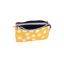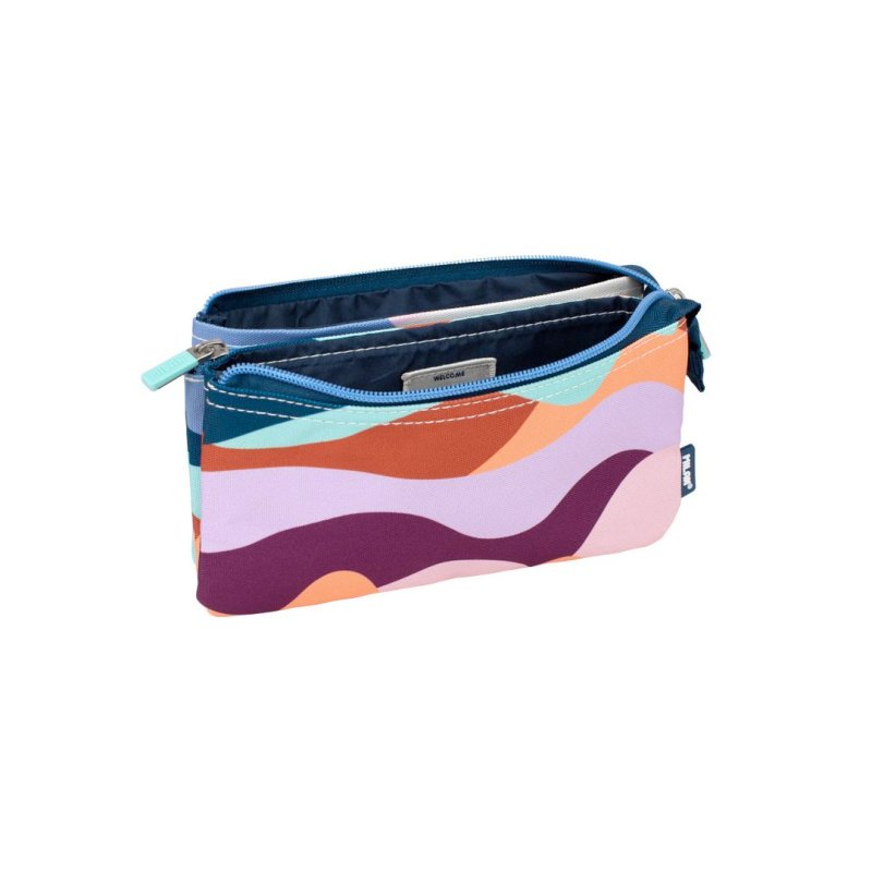Estuche portatodo con 2 cremalleras y 5 compartimentos. La cremallera exterior facilita el acceso a 4 bolsillos interiores y una cremallera central, para guardar cada cosa en su compartimento.