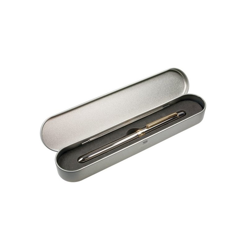 Bolígrafo tres funciones. Bolígrafo para regalo con cuerpo tono plata cromado; aro central con logo MILAN grabado y pinza en tono dorado. Tres funciones: bolígrafo azul, bolígrafo rojo y portaminas 0,5mm HB. El tubo de las tintas lleva impreso la fecha y el año de fabricación. Caja metálica.