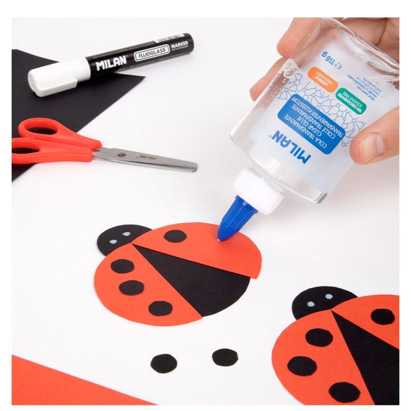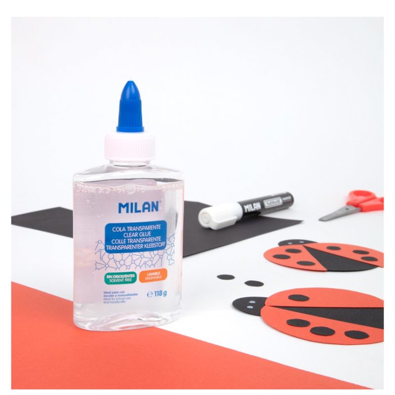 Cola líquida transparente. Lavable y sin disolventes. Ideal para uso escolar y manualidades. Pega fácilmente papel, cartulinas, fotografías, tejido, fieltro, corcho, cuero y espuma. Tapón con dosificador que permite una aplicación fácil y precisa. Bote de 118 gr.