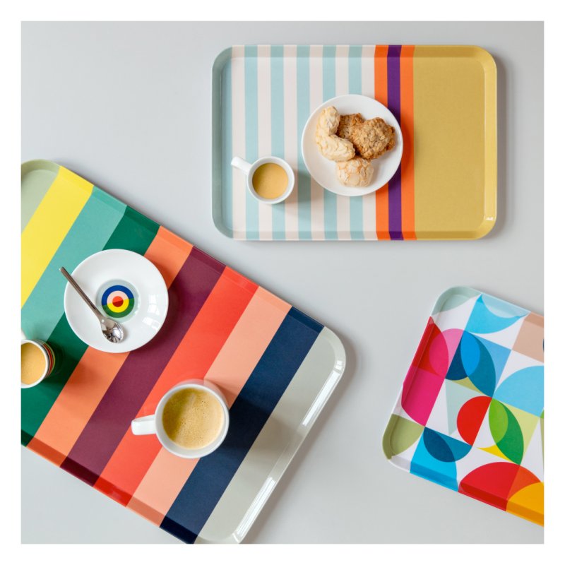 Bandeja colorida con revestimiento brillante impreso.