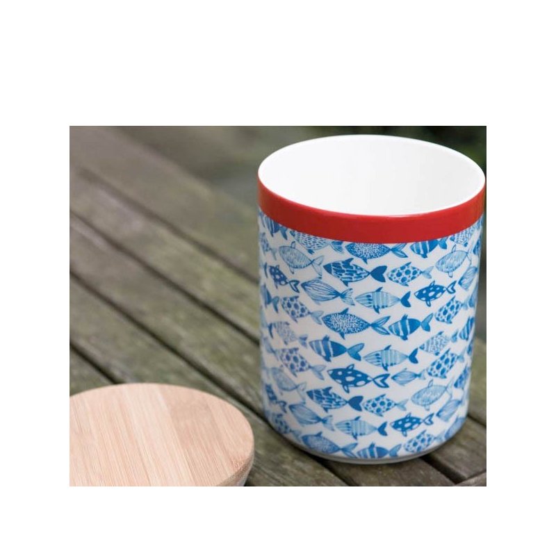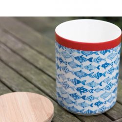 Material: Porcelain (food safe and dishwasher safe), lid made of massive bamboo wood.