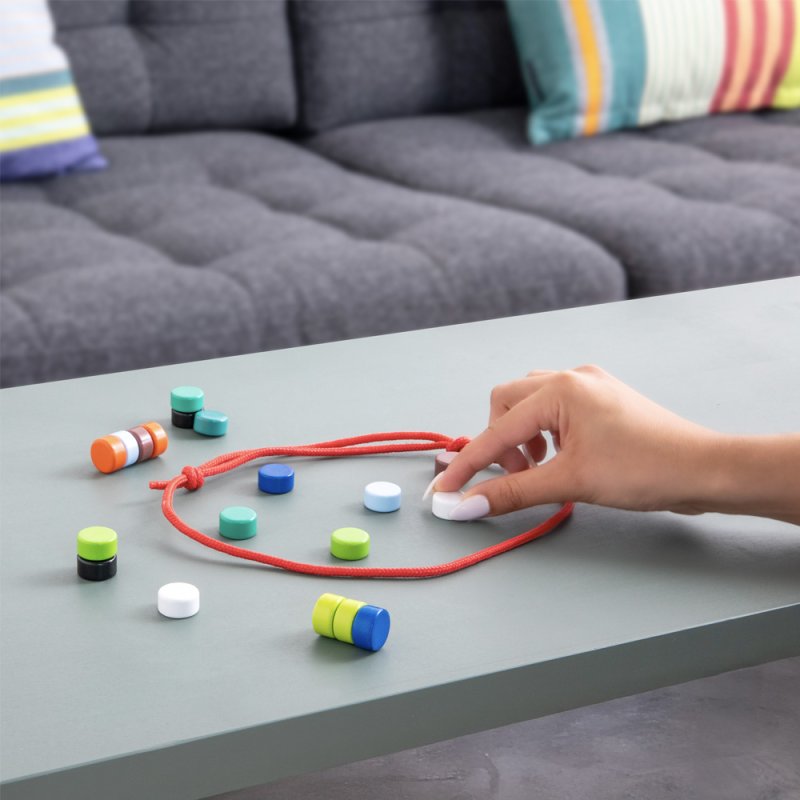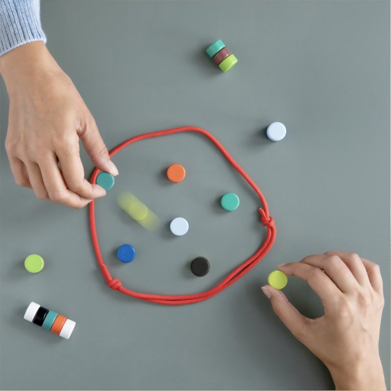 Contenido: 20 piezas magnéticas de color, cuerda de campo de juego, bolsa de tela, instrucciones de juego