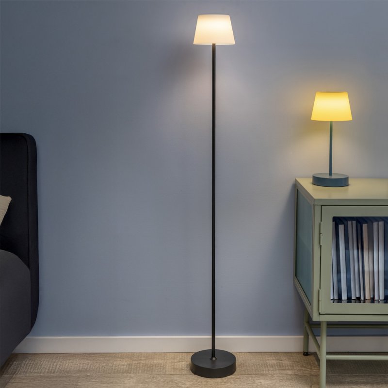 Lámpara de pie led con pilas, color de luz blanca cálida (3000 Kelvin), luminosidad 260 lúmenes, regulable en 3 pasos, tiempo de carga aprox. 6 horas, duración de la iluminación hasta 80 horas en el ajuste más bajo, incl. Cable textil USB-C (1,5 m), bombilla no reemplazable, vida útil aprox. 25.000 horas, para uso interior y exterior (IP44),