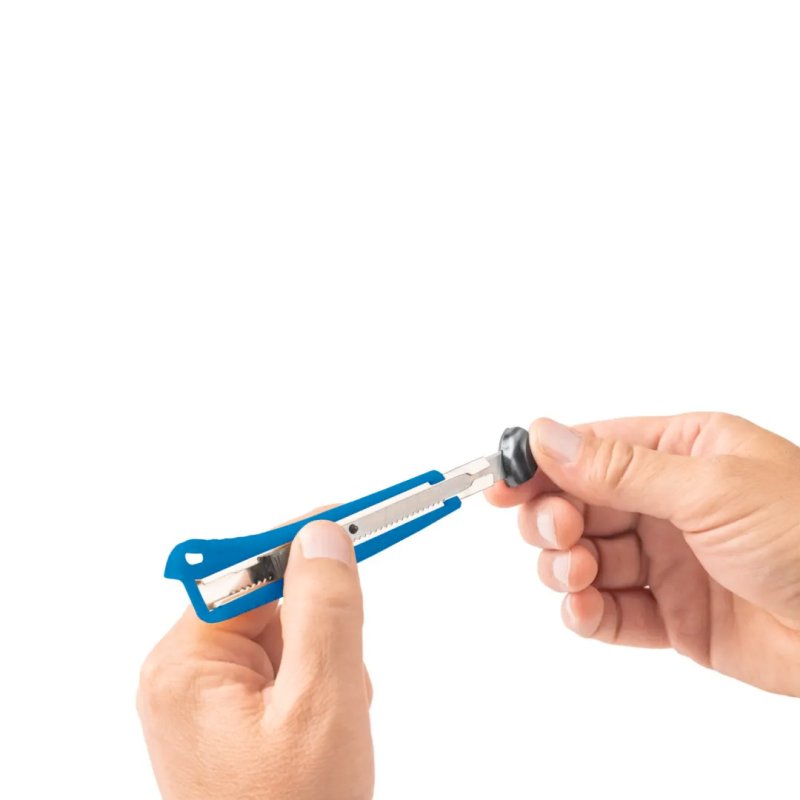 Hay una herramienta de corte para la cuchilla integrada en el mango de la carcasa de plás