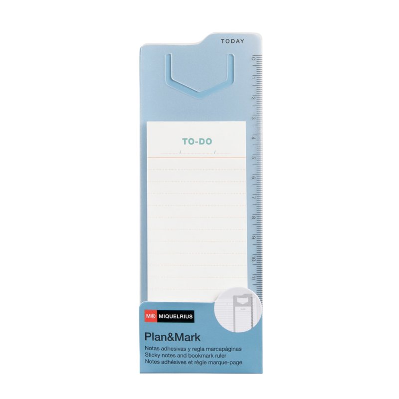 Plan&Mark: Regla marcapáginas + bloc de notas adhesivas. Organiza tu día con facilidad: marca páginas y anota ideas al instante. Práctico y funcional.