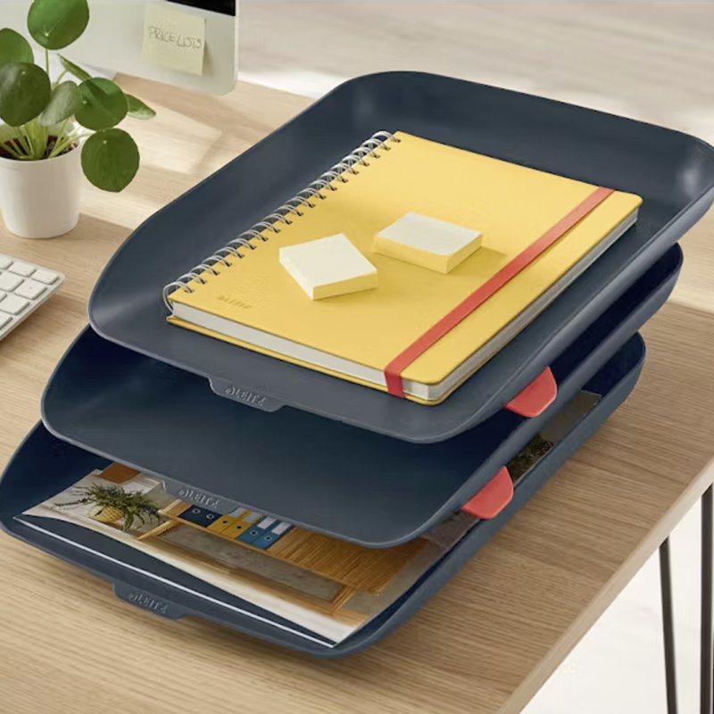 Set 3 bandejas de sobremesa Leitz Cosy, gris con elevadores.