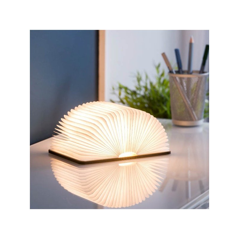 Una impresionante lámpara en forma de cubierta de libro, adecuada tanto para iluminar tu hogar como tu despacho. Funciona con LEDS de alto rendimiento (garantizadas un mínimo de 35000 horas de uso) y transforma cualquier ambiente en un perfecto juego de luces. Puedes mantener la lámpara cerrada como si fuera un libro o abrirla 360º para iluminar con luz LED suave.