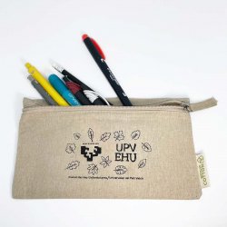 Estuche de línea nature elaborado en algodón reciclado. Compartimento principal de cierre de cremallera y tirador, con distintivo algodón reciclado en etiqueta.