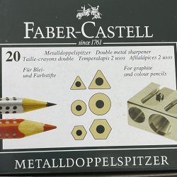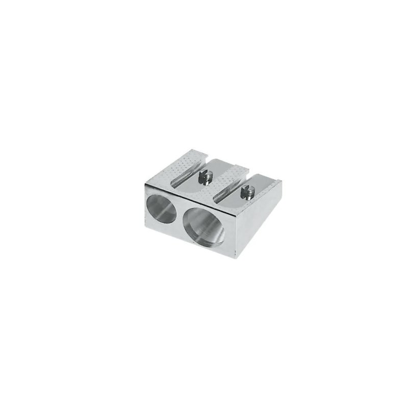 Afilalápices 3 en 1 para lápices de grafito y color de tamaño estándar y Jumbo con forma redonda, triangular y hexagonal, con dos depósitos independientes para la viruta. Disponible en color metálico plateado.