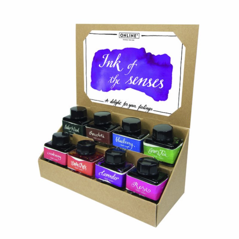 botes de 15 ml. de tinta de los sentidos en colores y fragancias intensos.