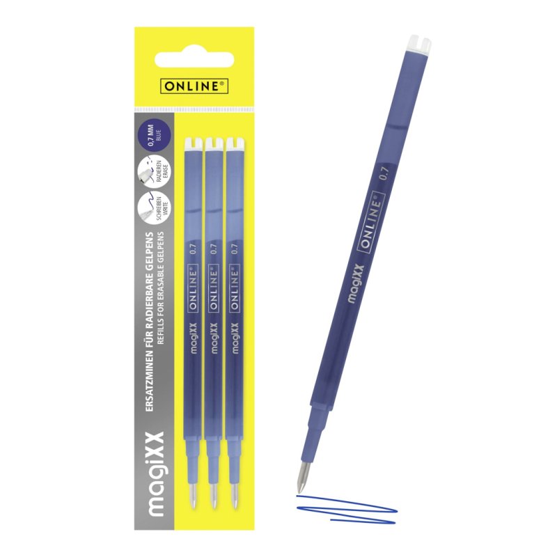 Usa tu bolígrafo borrable favorito una y otra vez. Los rellenos con punta de acero inoxidable sin plomo con bola de metal para una durabilidad adicional son compatibles con plumas de gel borrable magiXX de ONLINE y Pilot FriXion Ball.