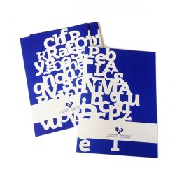 Subcarpeta basica azul y blanca de cartón, A4 con aplicación de tipografía ehu en el diseño.