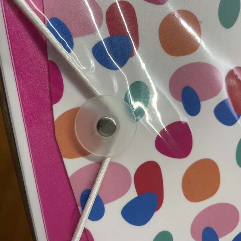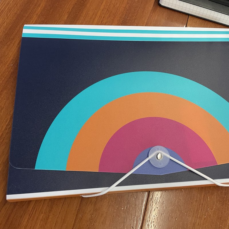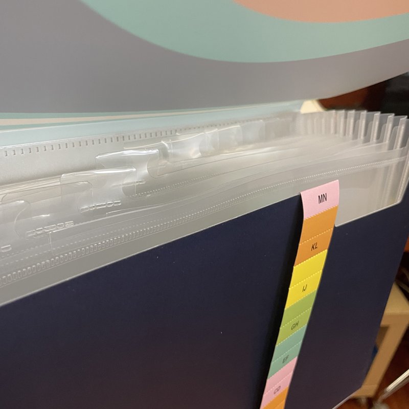 Carpeta acordeón clasificadora tamaño A4 con trece departamentos y cierre mediante goma elástica. Cubierta de plástico flexible multicolor. Dimensiones:40 x 32,50 x 2,40