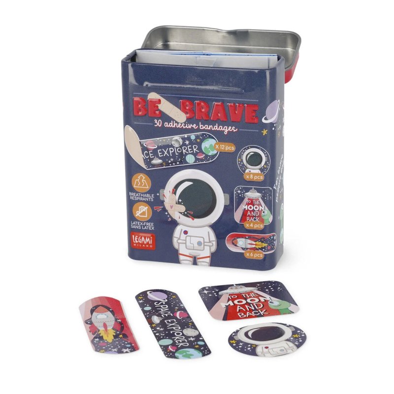 30 Tiritas Estampadas - Be Brave Space de Legami. 4 formatos diferentes,