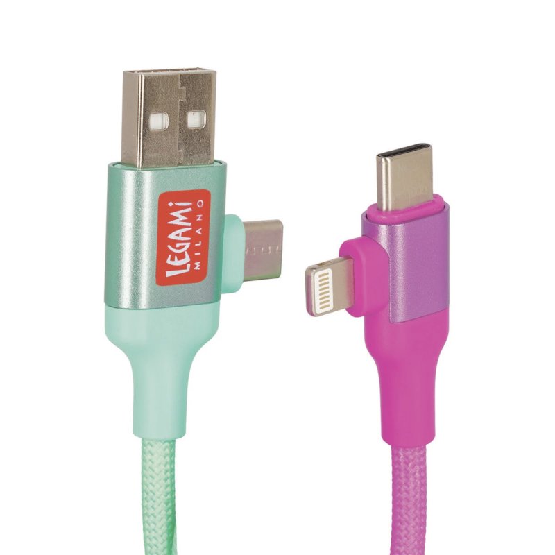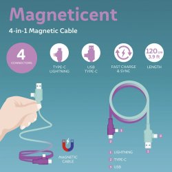 ¡El Cable Magnético 4 en 1 de Carga y Sincronización Magneticent Electric Aura de Legami es el cable para smartphone que se conecta al móvil y carga la batería hasta la última rayita!
