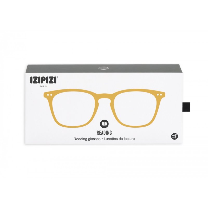 Gafas de lectura (presbicia) - Forma #E : trapezoidal, grande, estructurante - Modelo mixto y universal - Montura con efecto granulado, acabado mate - Bolsa de almacenamiento incluida en la caja.
