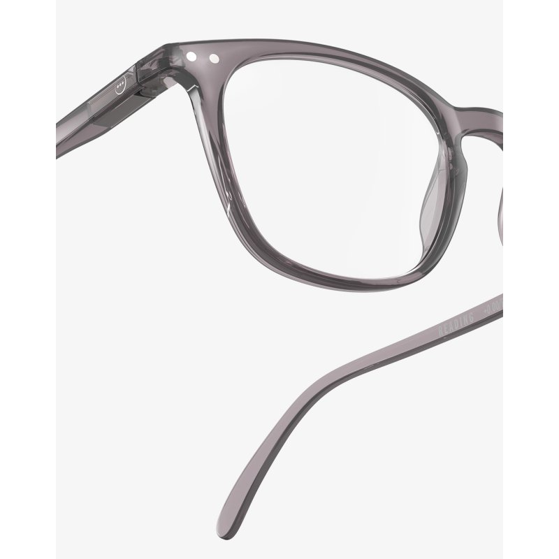 Gafas de lectura (presbicia) - Forma #E : trapezoidal, grande, estructurante - Modelo mixto y universal - Montura con efecto granulado, acabado mate - Bolsa de almacenamiento incluida en la caja.