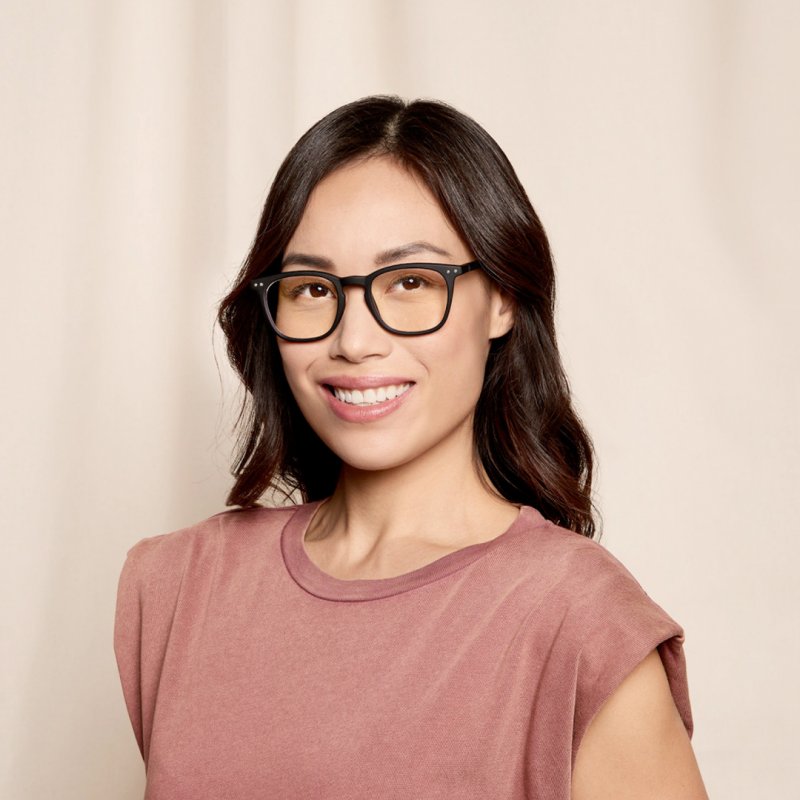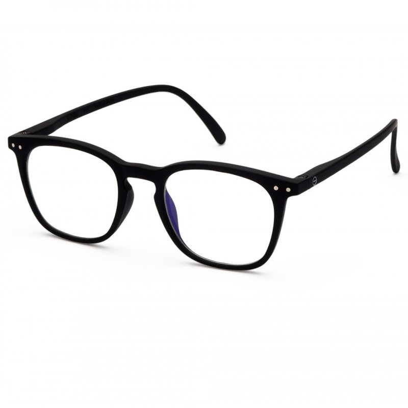 Gafas de protección para pantallas - 40% de filtro de luz azul (lentes ligeramente amarillas) - Forma #E: trapezoidales, grandes y estructuradas - Modelo mixto y universal - Estuche incluido en la caja
