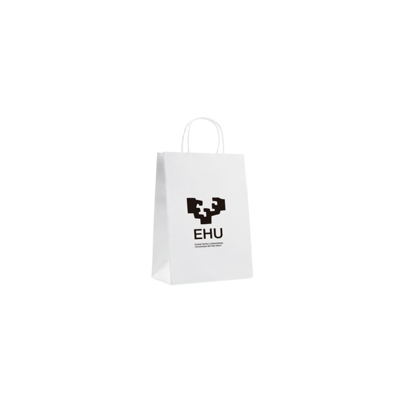 Bolsa pequeña de papel blanca 18 x 23 + 8 cm con asa reforzada. UPV/EHU