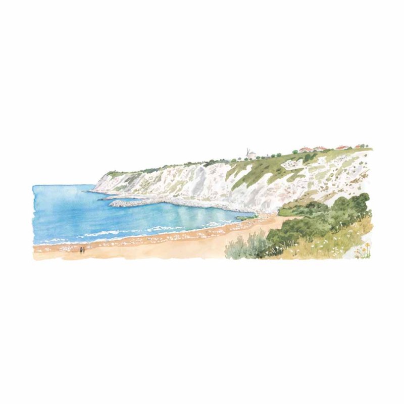 Acuarela de Elena Ciordia, , recuerdo de Algorta, Recuerdo de Getxo, Recuerdo de la costa vasca.