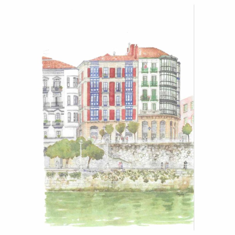Lámina de Marzana en acuarela de Elena Ciordia, Lámina de acuarela, Láminas Bilbao, Láminas decorativas, Postales Bilbao, Regalo Bilbao, Regalo original con encanto
