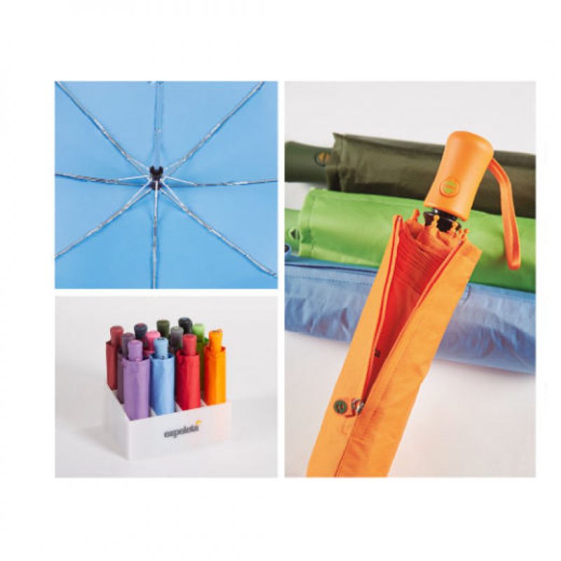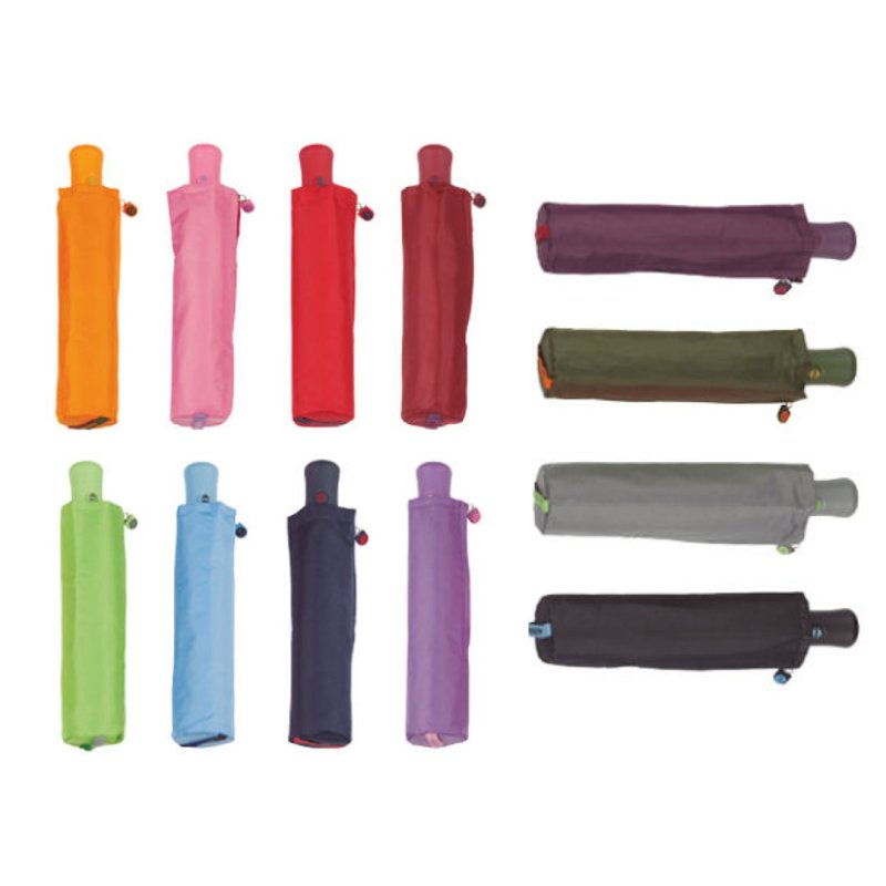 Paraguas plegable. 54/8 Aluminio abre-cierra automático con varillas de fibra de vidrio, 3 secciones. Liso. Tejido poliéster. Surtido de 12 colores.
