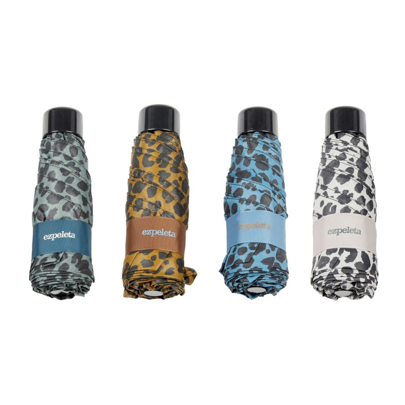 Paraguas plegable. 54/8 Metal abre-cierra automático con varillas de fibra de vidrio, 3 secciones. Liso. Mango curvo.Tejido poliéster. Surtido de 12 colores.
