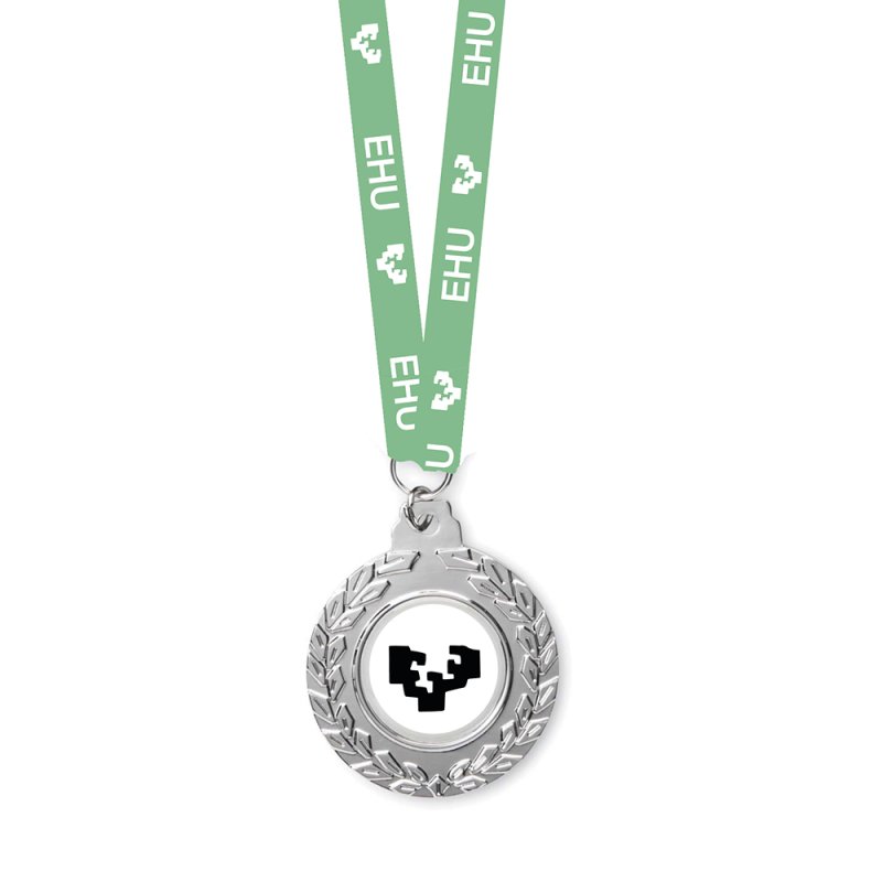 Medalla de metal con logo ehu en resina en la pate fronta, con posibilidad de personalización trasera, bajo presupuesto.
