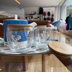 Taza Espresso con mango, con platillo, lavavajillas y microondas caja de regalo.