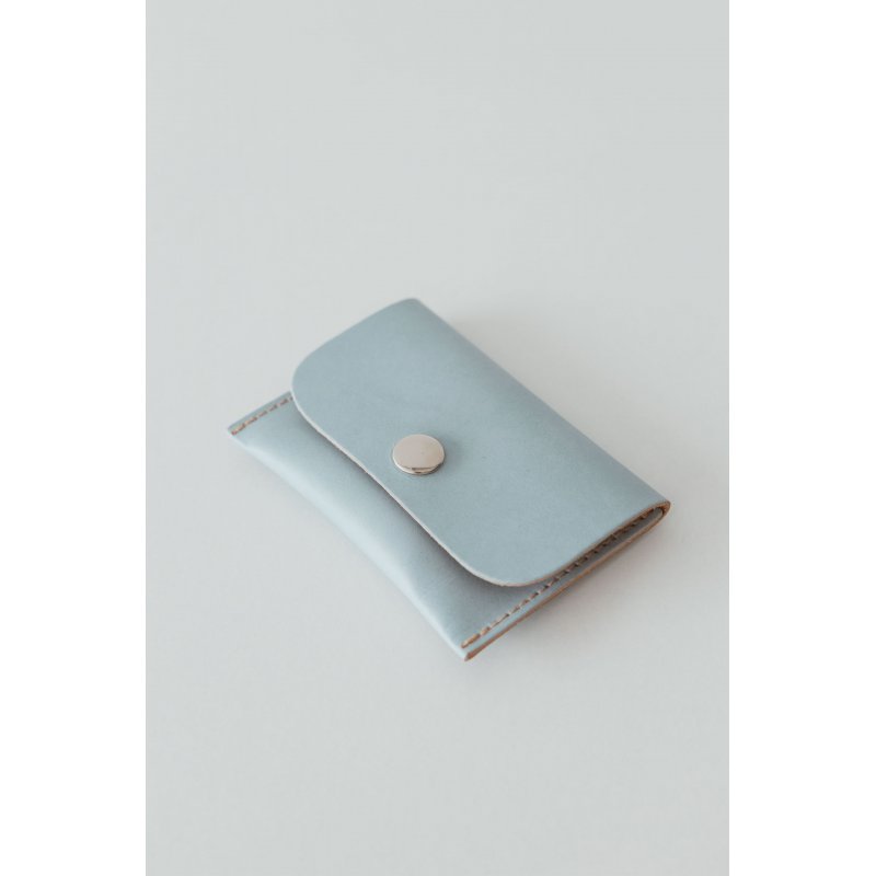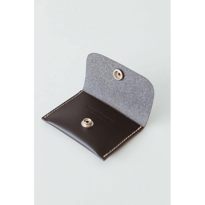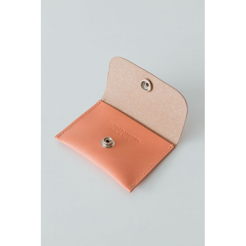 Cartera de piel con bolsillo de cremallera para las monedas. El tarjetero y el billetero se cierran con un botón a presión y una correa con efecto plisado. Mide 12,5 x 9 cm.
