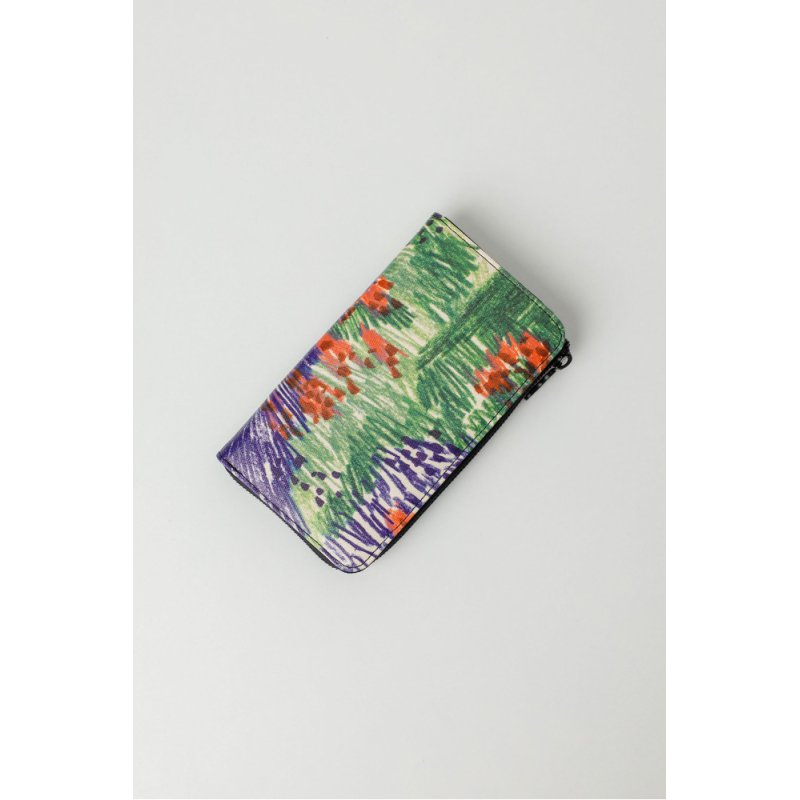 Cartera continental de algodón reciclado con cierre de cremallera y forro estampado. Múltiples ranuras para tarjetas en el interior. Estampado de flores.