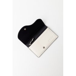 Cartera de piel con cierre de botón a presión. Bolsillo de cremallera para las monedas y tarjetero en la parte posterior. Mide 12 x 7 cm.