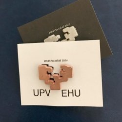 Chapa metálica de 3 cm en color negro, personalizada con el logo de la UPV/EHU. Perfecta para solapas, chaquetas, bolsos o uniformes, esta chapa es una opción elegante y profesional para reforzar la identidad corporativa.