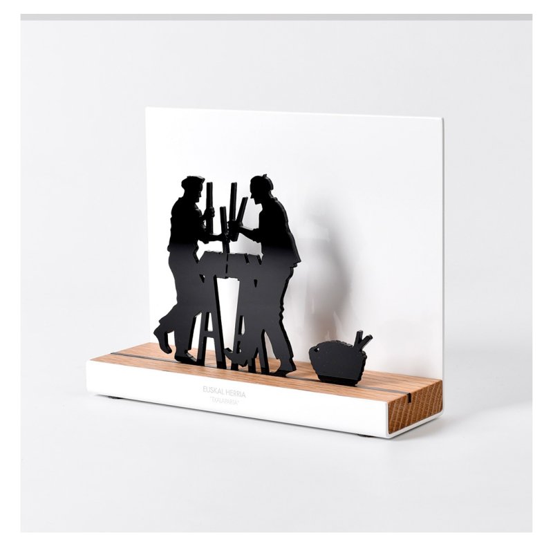 Instrumento musical creado desde la reinterpretación funcional de algunas herramientas de trabajo utilizadas en la elaboración de la sidra: la manzana era golpeada con las makilas encima de unos tablones para extraer jugo, convirtiendo la acción en ritmo a través de la txalaparta, de sonido muy particular, hondo, profundo y prístino que lo hace