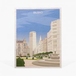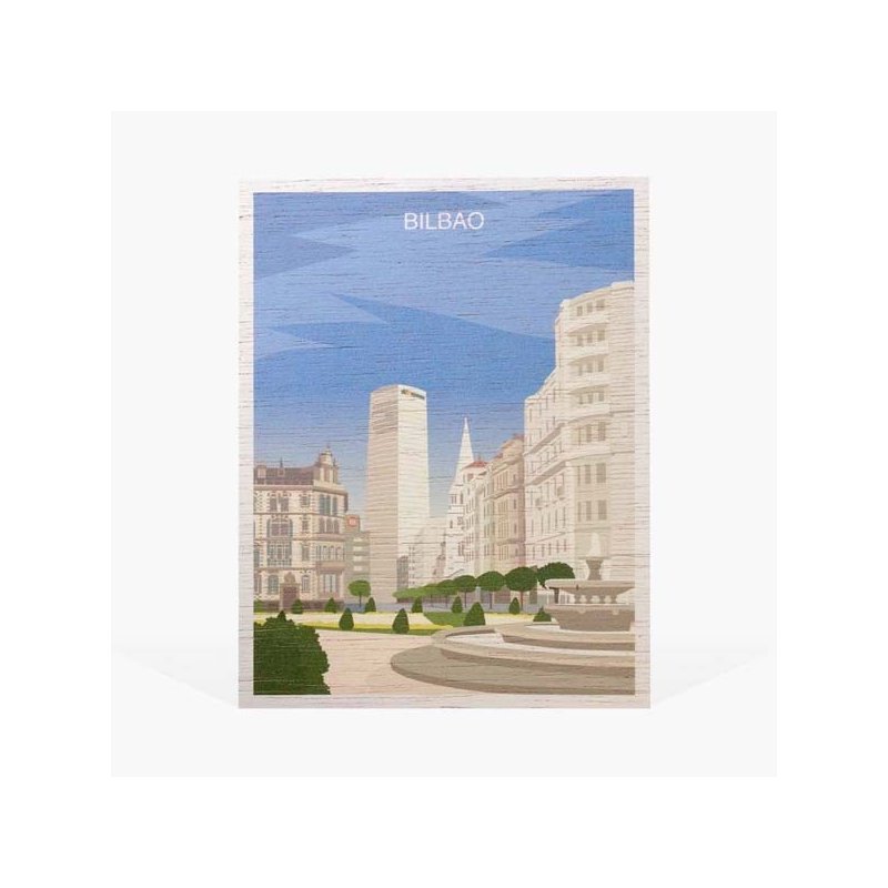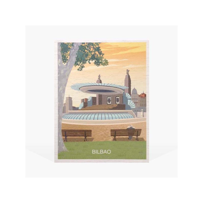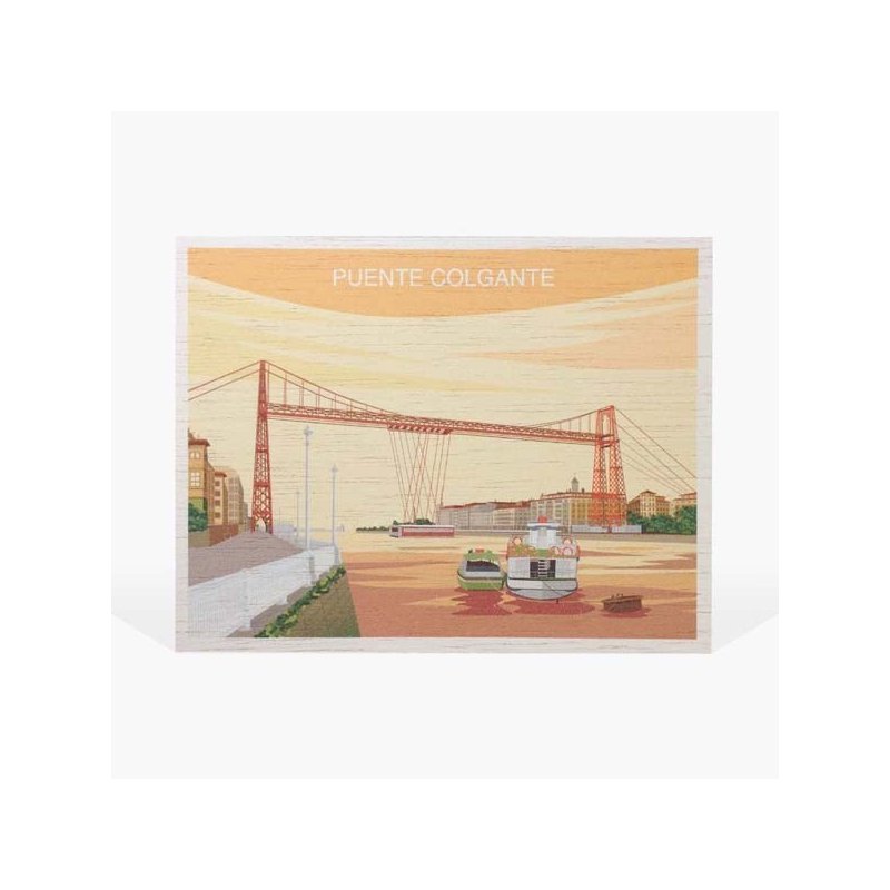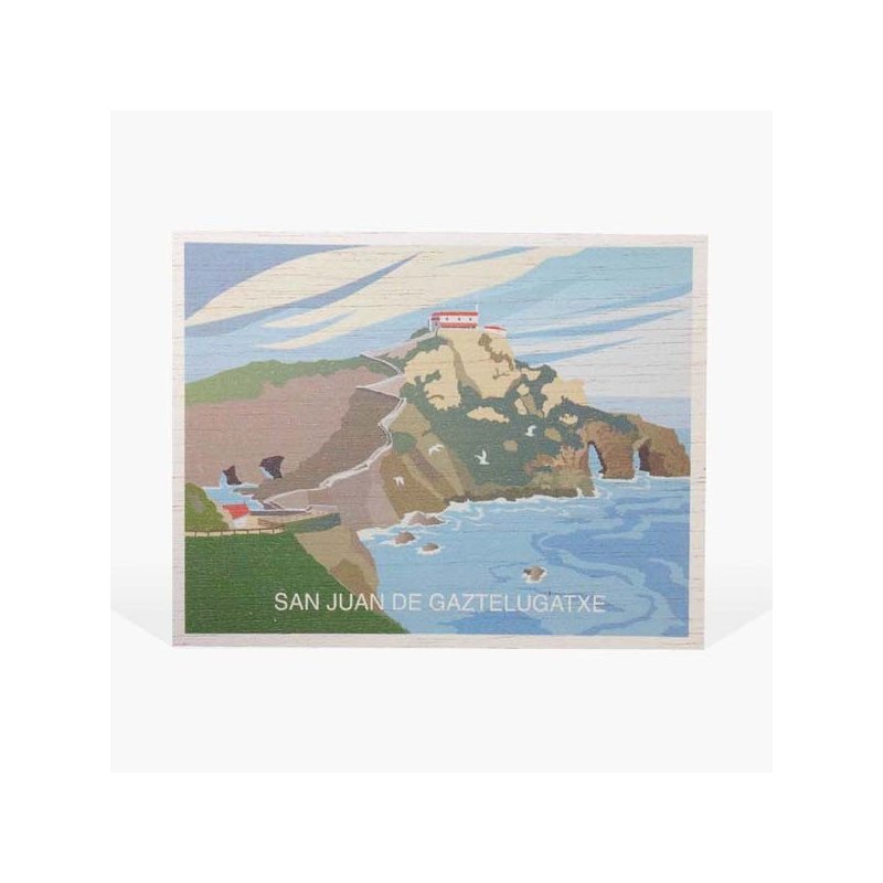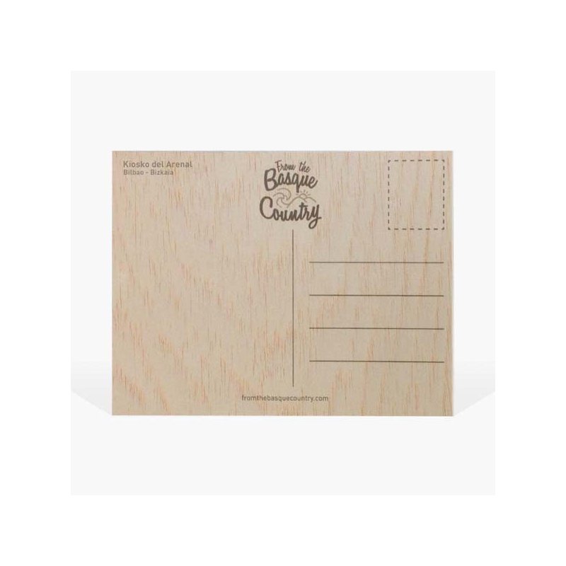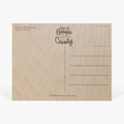 Lamina de madera de unos 3mm de grosor y menos de 25gr. pueden enviarse por correo. Ilustraciones que reproducen lugares emblemáticos de Euskal Herria.