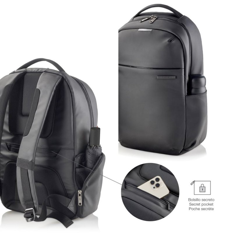 Mochila ordenador, Bolsillo antirobo RFID, Detalles reflectantes, Espalda ergonómica, Cierre seguridad, Adaptable trolley, Mochila portátil+tablet, Repelente al agua.